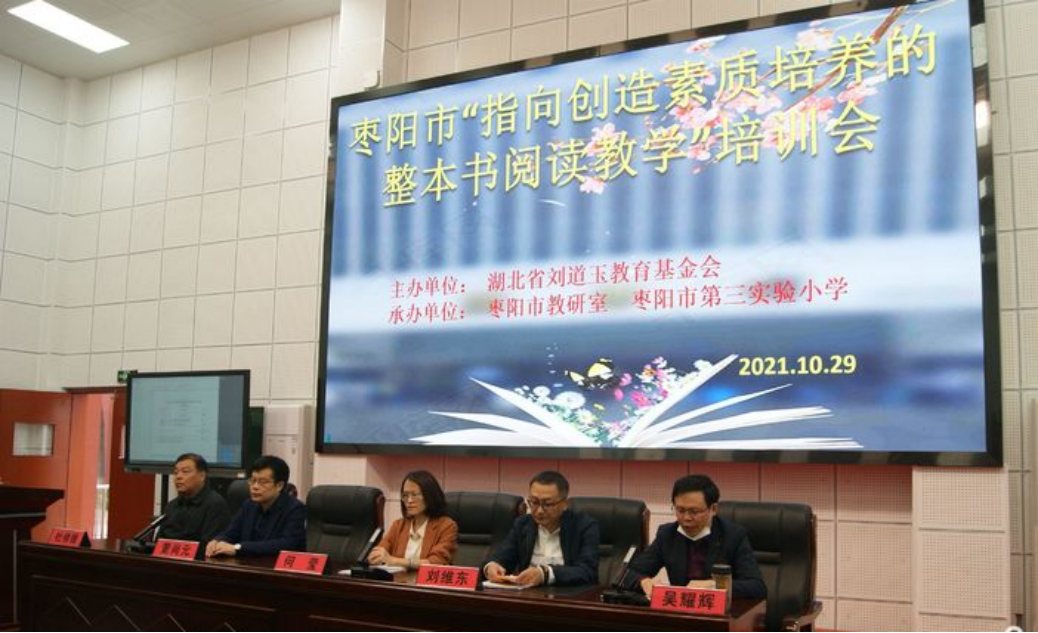10月29日,在枣阳市教研室的大力支持下,从当地30多个学校挑选出来的100多名骨干语文教师在枣阳市第三实验小学参加了刘道玉教育基金会的“创造阅读”教研培训活动。枣阳市教研室副主任任劲松、教研室主任吴耀辉、枣阳市第三实验小学校长杜修锋,基金会秘书长何莹、监事刘维东、特聘专家董尚元出席活动。